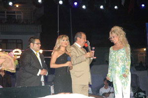 Belediye Başkanı Osman Develioğlu program finalinde sunucular Özden ve Okan Karacan ile sanatçı ceylana çiçek takdim etti