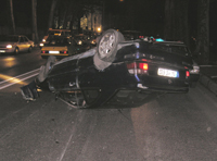 İlk kaza, saat 03.30 sıralarında Dolmabahçe Caddesi üzerinde meydana geldi. Maç sevincini arkadaşlarıyla kutladıktan sonra alkollü olarak yola çıkan Okan Yazmanoğlu'nun kullandığı 34 YE 632, aşırı hız nedeniyle takla attı. Okan Yazmanoğlu, kazadan şans eseri hafif şekilde yaralı olarak kurtuldu. Yazmanoğlu, ambulansla Şişli Etfal Hastanesi'ne kaldırıldı.