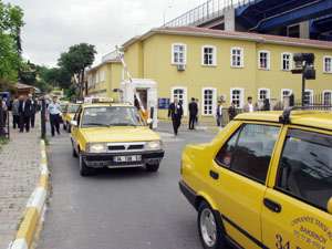 Yaklaşık 80 taksici, polislerin tüm uyarılarına rağmen kornalarını çalarak konvoy eşliğinde adliyeden ayrıldı.