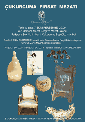 Yağlıboya eserler, antika eşyalar, çay takımları, çerçeveler ve takıların yeraldığı koleksiyon, 2 Ekim Cumartesi gününden bu yana Osmanlı Mezat Sergi Salonu'nda sergilenmeye başladı. Mezat, 7 Ekim Perşembe günü saat 20.00'de düzenlenecek.