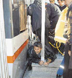 Sirkeci Tramvay İstasyonu’ndan dün sabah 08.30 sıralarında yolun karşısına geçmeye çalışan Can Çakıroğlu, istasyondan hareket eden tramvay ile peron arasında sıkıştı.