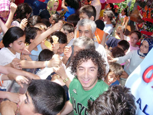 Bazı çocuklar ezilme tehlikesi geçirirken, büyükleri de miniklerin arasına karışarak dondurma almaya çalıştı. Dağıtımının ardından dondurma yeme yarışması yapıldı. Kaselerdeki dondurmaları kaşıksız yiyerek bitirmeye çalışan çocukların yüzü gözü krema oldu. Dereceye giren çocuklara yine dondurma dağıtıldı.
