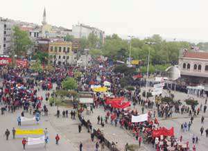 Binlerce sendika üyesinin Kadıköy İskele Meydanında düzenlediği 1 Mayıs mitingi sürerken, Carrefour Alışveriş Merkezi yakınında kurulan polis kontrol noktasında gerginlik yaşandı. Güvenlik güçleri, meydana giriş yapmak isteyen bir göstericiye kimlik sordu. Şahsın kimliğini tebliğ etmediği gerekçesiyle gözaltına alınmak istenmesi gerginliğe neden oldu.