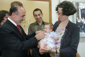 Belediye meclisinde kabul edilen konuk heyetle, karşılıklı işbirliği konularının görüşülmesi sırasında annesinin kucağında ağlayan bebeği fark eden başkan, minik kızı kucağına alarak şevkatle sevip sallamaya başlayınca bebeğin ağlaması kesildi. Başkana gülücükler dağıtan minik Lisanın bu hali heyettekileri hem şaşırtırken, hem de tebessüm ettirdi. Bebeğin sempatik ve sıcakkanlı olduğunu ifade eden başkan, bir altın nazarlık takarken ABli minik Lisayı, en küçük Kartallı hemşehrimiz ilan ediyorum. Lisa artık AB ile Kartal arasında dostluk ve işbirliği köprüsünün vazgeçilmez bir unsurudur. diyerek kendisini Kartalın en küçük fahri hemşehrisi ilan etti.