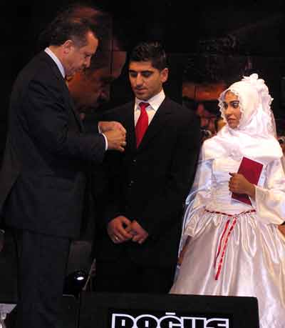 Çiftin nikahını ise Büyükşehir Belediye Başkanı Kadir Topbaş kıydı. İki çifte hediye olarak birer adet Cumhuriyet altını takan Başbakan Erdoğan, evlilik cüzdanlarını gelinlere verirken şunları söyledi: "Ben 50 çifte Allah’tan mutluluk diliyorum.