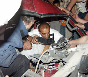 Kazada yaralanan sürücünün arkadaşı Nuri Uzun çevreden yetişen vatandaşlar tarafından araçtan çıkarılırken, sürücü Pazarcı minibüsün direksiyonunda sıkıştı. Bunun üzerine vatandaşlar itfaiyeden yardım istedi.