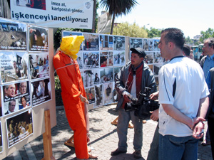 Dayanışma Vakfı, Irak’taki vahşete tepki göstermek amacıyla bugün İstanbul’un 20 ayrı noktasında Irak’taki vahşeti gösteren işkence fotoğraflarını sergiledi. Üsküdar Meydanı’nda açılan standda sergilenen fotoğrafların, başta George W. Bush ve Kofi Annan olmak üzere savaşla ilgisi bulunan kişi ve kuruluşlara gönderilmesine karar verilerek imza kampanyası başlatıldı.