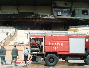 Veliefendi Hipodromu'nda elektrik kontağından sıçrayan kıvılcımlar nedeniyle yangın çıktı. Alevler kısa sürede büyüyerek şeref tribününe sıçradı. Tribünde bulunan plastik koltuklar tutuşunca yangın büyüdü.