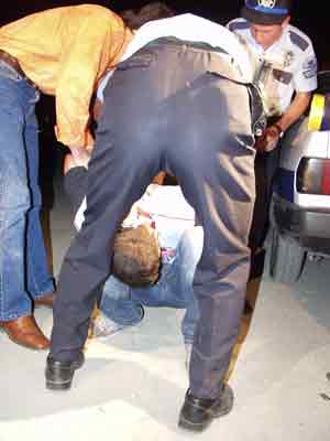 Durumu gören kamyon sürücüleri ile şahıslar arasında kovalamaca başladı. Şahıslardan biri kaçarken, köşeye sıkışan Bülent Kaya (21), kendisini jiletlemeye kalkıştı. Kaya'nın psikolojik sorunları olduğunu anlayan sürücüler, durumu hemen polise bildirdi. Olay yerine gelen güvenlik güçleri Kaya'yı ikna edebilmek için uzun süre uğraştı.