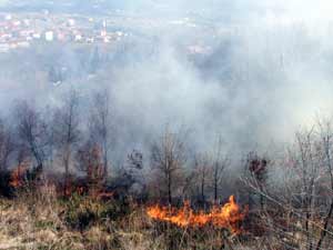 Bekirpaşa Beldesi Gündoğdu Mahallesi Dünya Bankası Kalıcı Konutları arkasında bulunan alanda öğle saatlerinde henüz belirlenemeyen bir nedenden çıkan çalılık yangını büyüyerek ağaçların bulunduğu alana sıçradı.