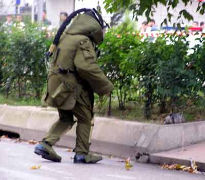 Aldıkları ihbar üzerine banka önüne giden polisler, çevrede geniş güvenlik önlemi aldıktan sonra, bomba imha uzmanı tarafından çanta fünye ile patlatıldı. Çantadan çocuk bezi çıkarken, olay sonrasında cadde tekrar araç trafiğine açıldı.