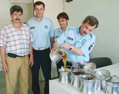 Bekirpaşa Belediyesi Zabıta Müdürlüğü ekipleri, vatandaşa alüminyum kap içerisinde satılmak istenen balları imha etmek üzere topladı.