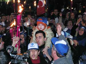 Demiryolu Caddesi üzerinde ellerinde meşaleler ile yürüyen grup, "Direne direne kazanacağız", "SEKA halkındır kapatılamaz" şeklinde sloganlar attılar. Yürüyüş boyunca çevrede polis tarafından geniş güvenlik önlemi alındı. Eylem, grubun ellerindeki maytapları belediye önünde patlatması ile olaysız son buldu.