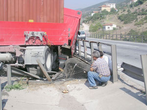 TEM Otoyolu İzmit Yarımca mevkiinde bir TIR'ın lastiğinin patlayarak kontrolden çıkması sonucu meydana gelen kazada 12 kişi yaralandı. Alınan bilgilere göre, Rıza Yılmaz idaresindeki 34 AD 6909 plakalı TIR, İstanbul'dan Sakarya istikametine seyir halindeyken, TEM Otoyolu Yarımca mevkiinde ön lastiğinin patlaması sonucu kontrolden çıktı. İki köprü arasındaki boşluğa sıkışan TIR'ın dorsesine, arkasında seyreden Engin Şengül idaresindeki 34 AL 5733 plakalı panelvan minibüs çarparak köprüden aşağı uçtu. Serhat Pazarbaşı idaresindeki 34 TY 9398 plakalı otomobil de TIR'a çarparak hurda haline döndü.