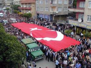 Sabah erken saatlerden itibaren şehit erin Gaziler Mahallesindeki evinin önünde toplanan binlerce kişi, şehit erin evinin önünde yapılan duaların ardından, tekbirler eşliğinde camiye doğru yürüyüşe geçti. Metrelerce uzunlukta dev bir Türk Bayrağı da açan kalabalık, yol boyunca sürekli "Şehitler ölmez, vatan bölünmez", "Kahrolsun PKK", "İmralı Apoya mezar olacak" şeklinde sloganlar attı.