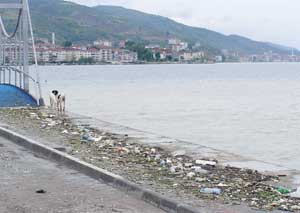 Beldede yapılan doğalgaz çalışmaları nedeniyle kazılan sokaklardaki topraklar denize akarken, denizdeki tüm kirlilik ise kıyıya vurdu.