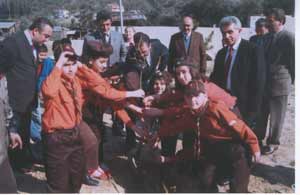 Tören sonrası Karamürsel Belediye Başkanı İsmail Yıldırım, okul öğrencilerinin sevgi çemberi içinde öğrenciler ile birlikte okul bahçesine ağaç fidanları dikti.