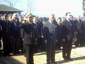 İlk tören Atatürk anıtı önünde yapıldı. Törene Karamürsel Kaymakam Vekili Celalettin Özdal, Garnizon Komutan Vekili Dz. Kıd. Kur. Alb. Semih Yeşilbursa, Belediye Başkanı İsmail Yıldırım, İlçe protokolü ve Şehit aileleri katıldılar.