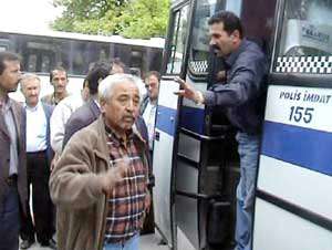Bunun üzerine 108 No’lu hat minibüsçüleri, araçlarının bağlanmasını ve gözaltına alınmalarını isteyerek emniyet aracına bindi. Toplantı ve yürüyüş kanununa muhalefetten dolayı gözaltına alınan şoförler araca binerken, "Suçsuz yere emniyete gidiyoruz" şeklinde bağırdı. 102 No’lu minibüs şoförleri ise araçlarını bina önünden çekerek, hatlarına geri döndü.