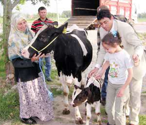 Adapazarında yaklaşık bir hafta önce, kimliği belirsiz hırsız ya da hırsızlar tarafından ahırdaki 1 aylık hamile ineği ile 1.5 yaşındaki buzağısı çalınan ve daha sonra da kesilen Ayşe Birinciye, Sakarya Damızlık Sığır Yetiştiricileri Birliği Başkanı Hakan Candemir ve yönetim kurulu tarafından, inek ile buzağı verildi.