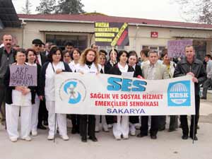 "Parasız eğitim, parasız sağlık istiyoruz" şeklinde slogan atan SES üyeleri, "Genel sağlık sigortasının faydadan çok zarar getireceğine inanıyoruz. Sakarya Devlet Hastanesine, özel bir şirket kanalı ile sağlık personeli alınıyor. Bu personel sosyal haklardan mahrum bırakılıyor. Hükümetin uygulamaları memurlara eziyet çektirmekten başka bir şey değil" dediler.