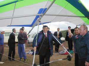 Ardından yamaç paraşütüyle poz veren Okutan, daha sonra Antrenör Bülent Şenolun gösterisini izledi.