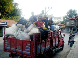 Fındık toplamak üzere Güneydoğu illerinden Adapazarı'na gelen çok sayıda işçi, kamyonlar üzerinde eşyalarıyla birlikte yolculuk yaparken polis kontrolüne takıldı. Her yıl Güneydoğu illerinden fındık toplamak üzere yük trenleriyle çileli yolculuk yaparak Adapazarı'na gelen yüzlerce fındık işçisi, fındık toplayacakları alanlara otobüs veya minibüs yerine kamyonlara binerek gitmek zorunda kalıyor.
