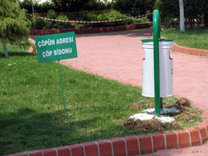 Özellikle vatandaşların yoğun olarak kullandıkları sahil yürüyüş bandı ve parklarda çöp kutularının hemen yanına koyulan tabelalarla, çevrenin kirletilmemesi konusunda uyarılarda bulunuluyor. 'Çöpün adresi çöp bidonu', 'Medeni insan yere çöp atmaz' yazılı tabelalar vatandaşların ilgisini çekiyor.