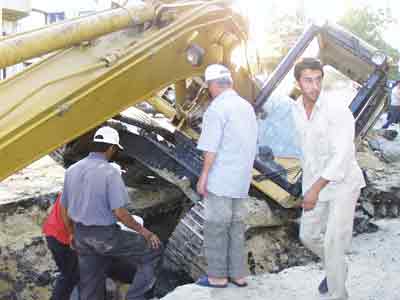 Yolun altının yumuşak olması nedeniyle meydana gelen kazayı, iş makinesi sürücüsü burnu bile kanamadan atlattı. Çukurdan çıkarılan iş makinesi çalışmasına kaldığı yerden devam etti.