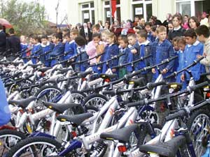 Tekirdağın Çorlu İlçesi Karamehmet köyünde gerçekleştirilen törenle, Trakya Sanayiciler Derneği tarafından, taşımalı eğitim gören 88 öğrenciden 40ına bisiklet dağıtıldı.