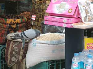 Dükkan sahiplerinin genellikle müşteriyle meşgul olduğu zamanlarda gelen kuşlar kuruyemişlerin büyük kısmını talan ediyor. "Güvercinlerle adeta savaşıyoruz" diyen kuruyemişçiler, "Sabah dükkanı açıp mallarımızı dışarı çıkartmamızla birlikte kuşlar kuruyemişlere saldırıyor. Kovalıyoruz; ama bu sadece bir anlık çare oluyor. Ardından yine geliyorlar. Özellikle müşterilerle ilgilendiğimiz anlarda fark edemiyoruz. O zaman zarar veriyorlar" dedi.