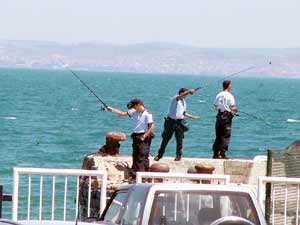 Yalova’da Çevik Kuvvet ekipleri, boş zamanlarında soluğu deniz kenarında alırken, günün stres ve yorgunluğunu ellerindeki oltalarla balık avlarken atan polisleri gören vatandaşlar, "Hep suçluları yakalıyorlar, şimdi de balık yakalasınlar"diye yorum yaptı.