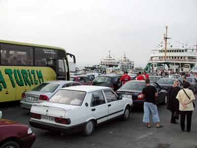 Okul kayıtlarının başlamasıyla işlerini son güne bırakmak istemeyen tatilciler geri dönüşe geçerken, İstanbul’a en kısa ulaşımı sağlayan Topçular-Eskihisar arabalı vapur iskelesinde büyük bir yoğunluk yaşanıyor. Topçular’da yaşanan yoğunluk sebebiyle E-130 karayolunun sağ şeridi neredeyse trafiğe kapanırken, yer yer yüzlerce metreyi bulan kuyruklar oluşuyor. Gemiye binebilmek için saatlerce kuyrukta bekleyen vatandaşlar, sefer sayılarının artırılmamasına tepki gösteriyor.