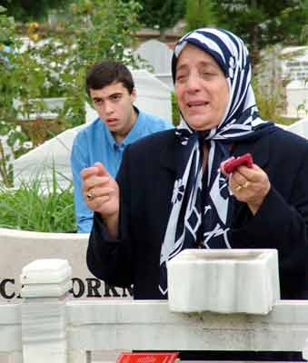 Karanfillerle bezenen mezarların çevresindeki vatandaşların yanına giderek taziyede bulunan Yalova Belediye Başkanı Binicioğlu ve Erbay daha sonra şehitlikten ayrıldı.